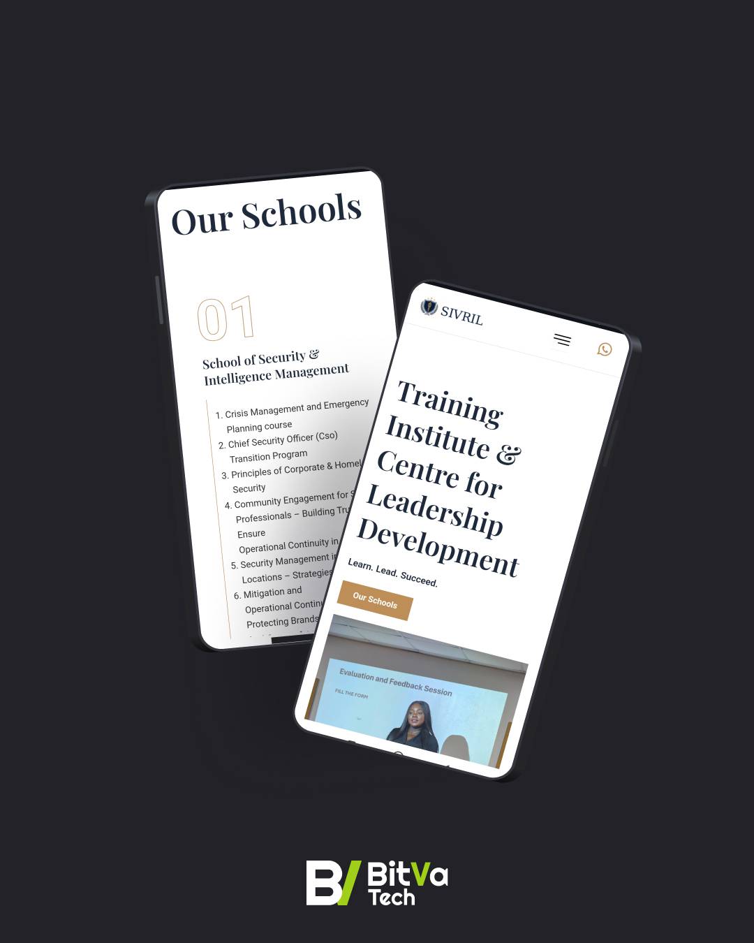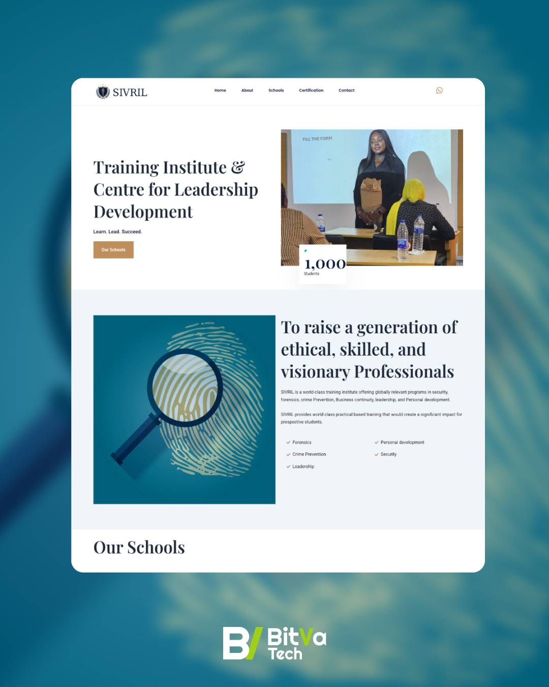A highly structured yet visually clean one-page website that makes SIVRIL Institute’s extensive course catalog easily navigable. Each of the six schools is presented in its own clearly defined section, with courses listed in digestible formats. The design successfully conveys professionalism and authority, encouraging prospective students to explore programs and make contact.